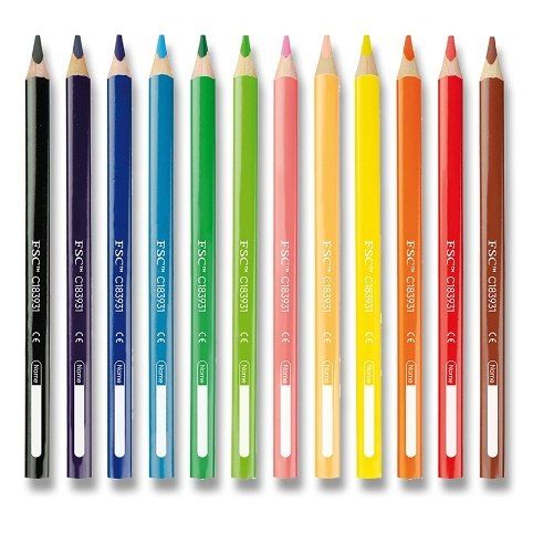 Silné pastelky s jemným a plynulým vedením. Trojhranné tělo, intenzivní barvy, kvalitní lipové dřevo. Sada 12 barev.