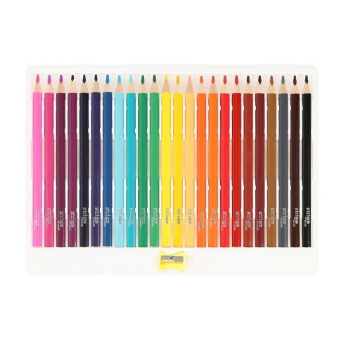 24 JUMBO pastelek vyrobených z měkkého lipového dřeva. Vnitřní grafit má tloušťku 3,0 mm. Ořezávátko je součásti balení.
