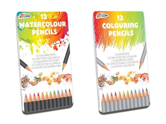 Pastelky v kovové krabičce, dva druhy vodové/klasické, 12 ks.