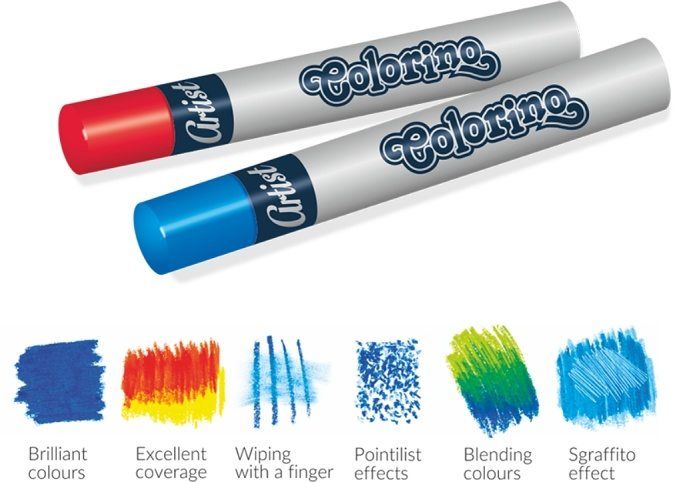 Snadno mýchatelné do přesných odstínů a barevných škál. Mohou být použity jako suché barvy, nebo vlhké s terpentinem. Použití na papír, karton a látky.