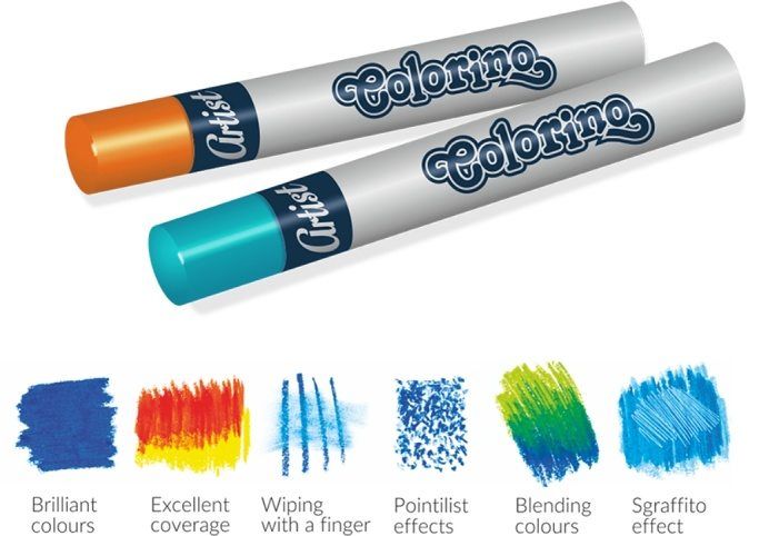 Snadno mýchatelné do přesných odstínů a barevných škál. Mohou být použity jako suché barvy, nebo vlhké s terpentinem. Použití na papír, karton a látky.