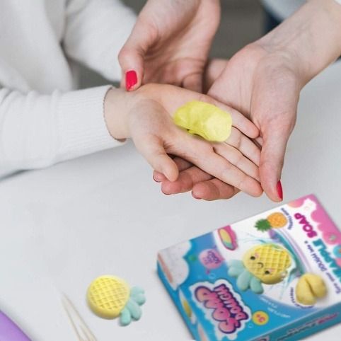 Netoxická sada pro výrobu vlastního mýdla. Obrázkový návod součástí balení.