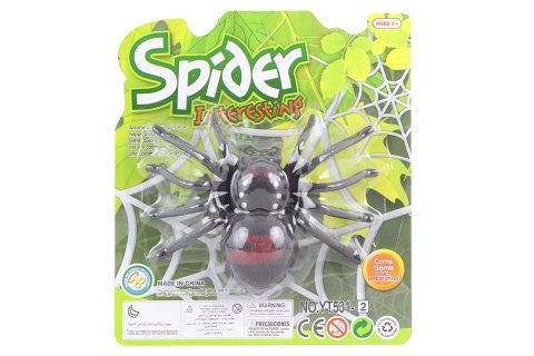 Plastový pavouk natahovací o rozměru cca 10 x 12 cm. Rozměr balení cca 18 x 16 x 3,5 cm. Věk 3+