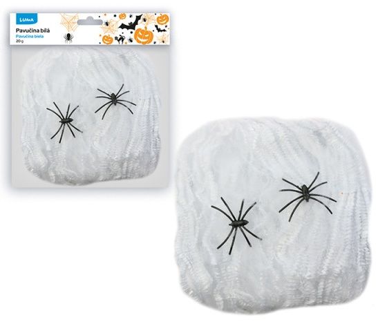 Dekorační bílá pavučina- 2 pavouci součástí balení- hmotnost: 20g