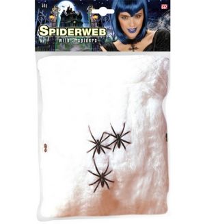 Bílá pavoučí (váha cca 50 g) síť se třemi pavoučky, dekorace vnitřní, nebo venkovní dekorace.