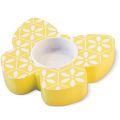 Dřevený stojánek na čajové svíčky ve žlutém provedení.