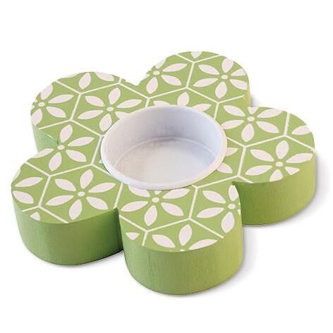 Dřevený stojánek na čajové svíčky v zeleném provedení.
