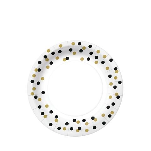 Papírové talíře Confetti Gold-Black, průměr 18 cm, balení obsahuje 10ks. Papírové talíře jsou ideálním řešením pro snadné stolování bez nepořádku.