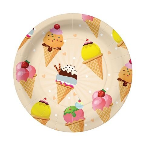 Papírové talíře Ice Cream, průměr 23 cm, balení obsahuje 10ks. Papírové talíře jsou ideálním řešením pro snadné stolování bez nepořádku.
