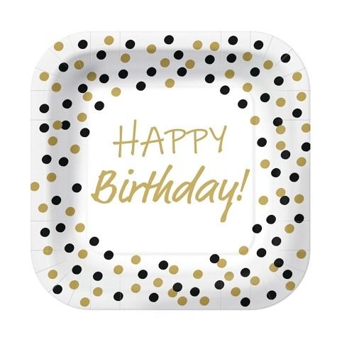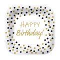 Papírové talíře Birthday Confetti Gold&Black, průměr 23 cm, balení obsahuje 10ks. Papírové talíře jsou ideálním řešením pro snadné stolování bez nepořádku.