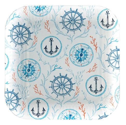 Hranaté papírové talíře Marine World, 10 ks. Papírové talíře jsou ideálním řešením pro snadné stolování bez nepořádku.