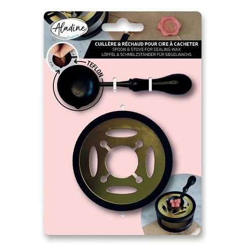 Teflonová sada k rozehřátí pečetních vosků ve formě granulí na výrobu pečetí, kterými ozdobíte svatební oznámení, pozvánky, chlopně obálek, dárky i kreativní projekty. Stojánek se lžičkou se umístí nad zapálenou čajovou svíčku. Do lžičky se vloží 3–4 granule vosku, použít lze různé barvy pro mramorovaný efekt. Po roztavení se vosk ze lžičky nalije na požadované místo, vtiskne se do něj kovové pečetidlo a pečeť je hotová.