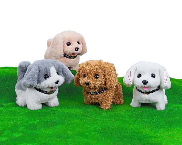 Pejsek chodící. Rozměry 18x14x16 cm. Chodí, hýbe hlavou a ocasem. 2xAA baterie nejsou součástí. 8 ks display box. 4 varianty.