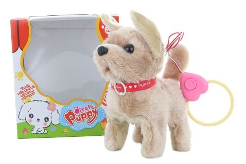 Pejsek o velikosti cca 14 x 16 x 8 cm na kabel. Pejsek chodí na ovládání na kabel a štěká. Při přepnutí do polohy ON - pejsek chodí sám. Napájení na 2 AA baterie (nejsou součástí). Rozměry balení cca 16 x 18,5 x 10. Věk 3+