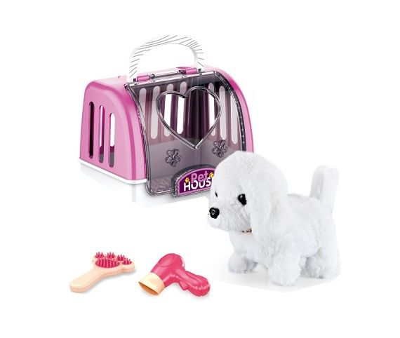 Pejsek chodí a vydává zvuky. Výrobek rozvíjí jemnou motoriku dítěte. Na baterie: 2x AA (nejsou součástí balení)