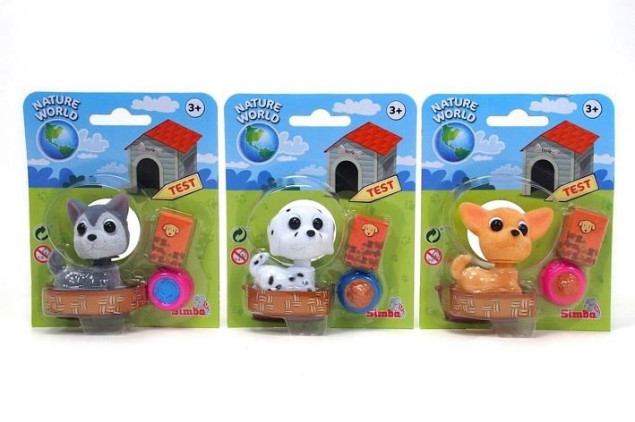 Roztomilý pejsek s kývací hlavou. Velikost 7 cm. Součástí je miska a krabička krmení. 3 druhy.