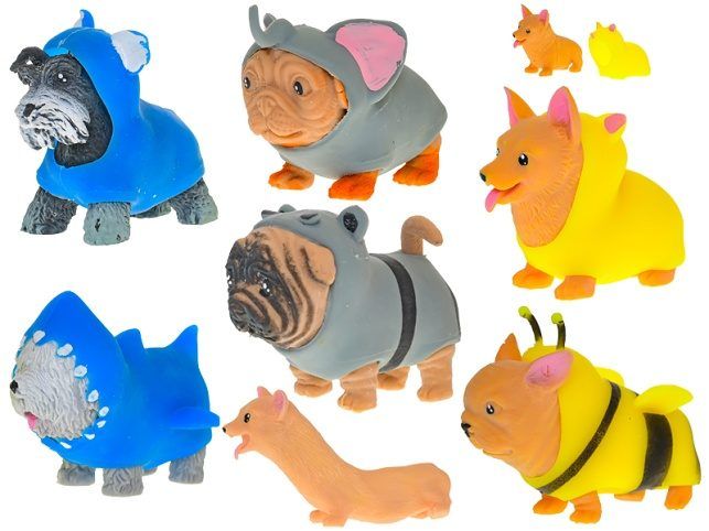 Druhy: corgi, buldoček, anglický ovčák, mops, welsh teriér, boxer