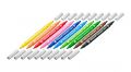 = 20 barev jsou ideálním vybavením do školy i pro volný čas. Vláknové propisky mají 2 hroty různé tloušťky Tenké hroty 1 mm, silné hroty 2 mm Barva fixů je na vodní bázi, a proto se smývá z většiny textilií.