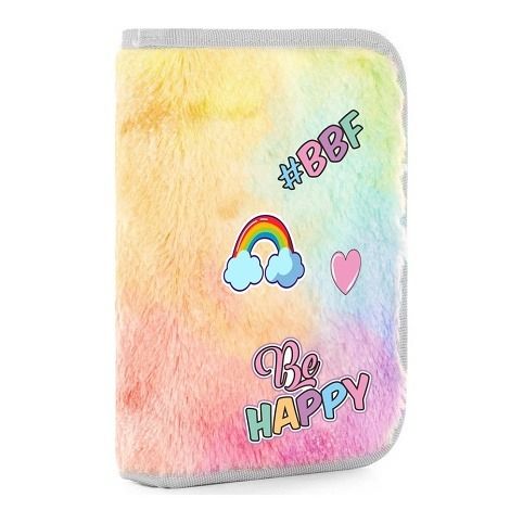 Jednopatrový školní penál s plyšovým efektem se 2 chlopněmi, prázdný obsahuje 25 gumových poutek pro uchycení psacích potřeb. Na vnitřních chlopních jsou průhledné fólie pro rozvrh hodin.