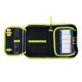 Jednopatrový školní penál se 2 chlopněmi, prázdný obsahuje 25 gumových poutek pro uchycení psacích potřeb. Na vnitřních chlopních jsou průhledné fólie pro rozvrh hodin.