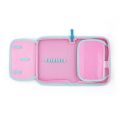 Jednopatrový školní penál s 2 chlopněmi, prázdný obsahuje 25 gumových poutek pro uchycení psacích potřeb. Na vnitřních chlopních jsou průhledné fólie pro rozvrh hodin.
