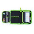 Jednopatrový školní penál s 2 chlopněmi, prázdný obsahuje 25 gumových poutek pro uchycení psacích potřeb. Na vnitřních chlopních jsou průhledné fólie pro rozvrh hodin.