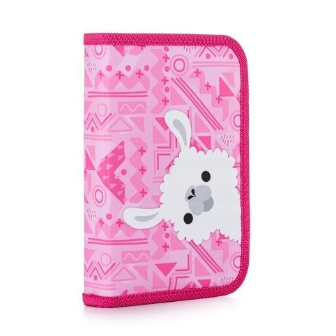 Školní pouzdro s náplní s motivem lamy. Plněný penál obsahuje kvalitní školní potřeby značek Centropen a Staedtler: trojhranné pastelky 6 ks, fixy 8 ks, tužky 2 ks, guma, ořezávátko,pravítko 12 cm, rozvrh hodin.