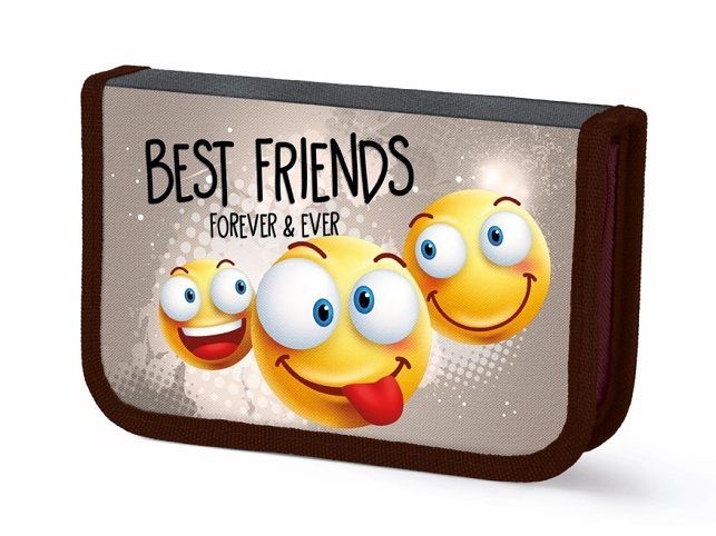 Jednopatrový školní penál s textem Best Friends Forevera Ever a s motivem smajlíků. Vevnitř penálu jsou přihrádky a poutka na psací potřeby. Penál se uzavírá zipem a je z kvalitních a odolných materiálů. Toto školní pouzdro není vybavené. Penál je zdravotně nezávadný a neobsahuje toxické látky.