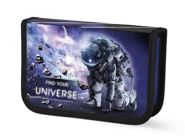Jednopatrový školní penál s motivem vesmíru. Vevnitř penálu jsou přihrádky a poutka na psací potřeby. Penál se uzavírá zipem a je z kvalitních a odolných materiálů. Nepostradatelná součást výbavy každého školáka. Toto školní pouzdro není vybavené. Penál je zdravotně nezávadný a neobsahuje toxické látky. Uvedená cena je za 1 ks.