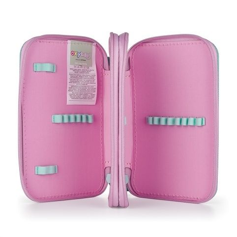 Školní penál dvoupatrový bez náplně. Penál obsahuje 25 gumových poutek pro uložení všech psacích potřeba a drobností potřebných k výuce. Penál má pevný zip s velkými taháčky pro snadnou manipulaci. Jedno patro je opatřeno průhlednou přihrádkou pro týdenní rozvrh.