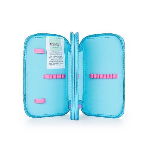 Školní penál dvoupatrový bez náplně. Penál obsahuje 25 gumových poutek pro uložení všech psacích potřeba a drobností potřebných k výuce. Penál má pevný zip s velkými taháčky pro snadnou manipulaci. Jedno patro je opatřeno průhlednou přihrádkou pro týdenní rozvrh.