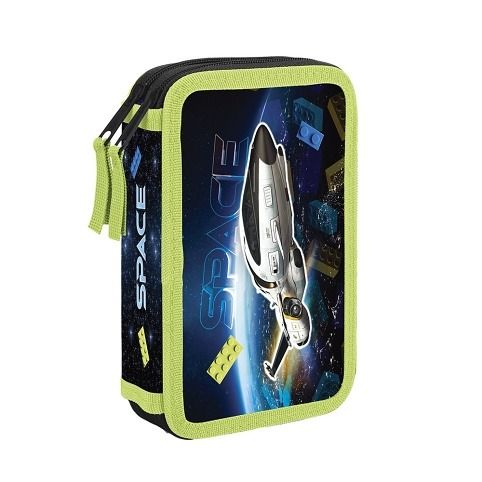 Školní penál dvoupatrový bez náplně. Penál obsahuje 25 gumových poutek pro uložení všech psacích potřeba a drobností potřebných k výuce. Penál má pevný zip s velkými taháčky pro snadnou manipulaci. Jedno patro je opatřeno průhlednou přihrádkou pro týdenní rozvrh.