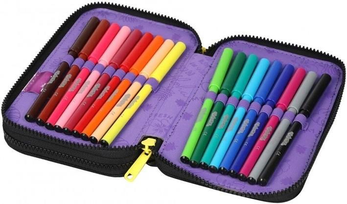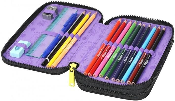 Penál 2 zipy Jumper Stitch black - vybavený