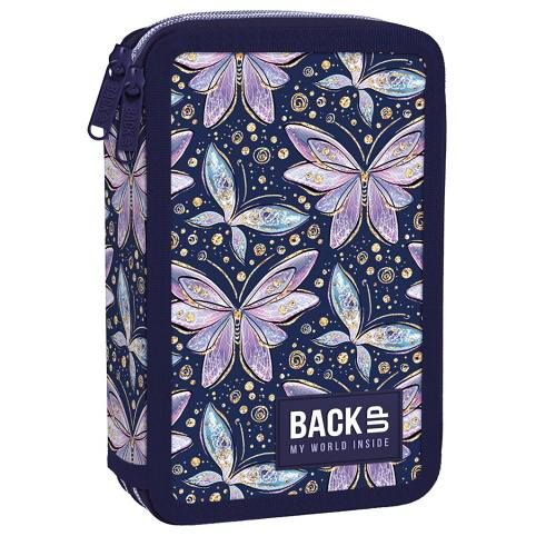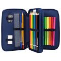 18 ks fixů, 9 ks pastelek, propisku, tužku HB, ořezávátko, pryž a 15 cm pravítko