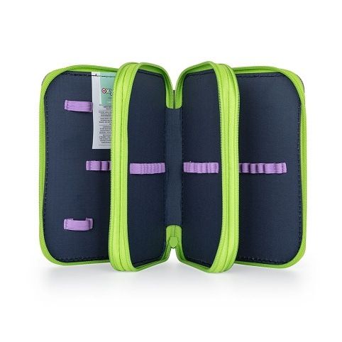 Školní penál třípatrový bez náplně. Penál obsahuje 40 gumových poutek pro uložení všech psacích potřeb a drobností potřebných k výuce. Penál má pevný zip s velkými taháčky pro snadnou manipulaci. Jedno patro je opatřeno průhlednou přihrádkou pro týdenní rozvrh.