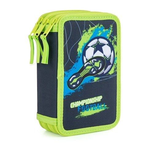 Školní penál třípatrový bez náplně s motivem fotbalu. Penál obsahuje 40 gumových poutek pro uložení všech psacích potřeb a drobností potřebných k výuce. Penál má pevný zip s velkými taháčky pro snadnou manipulaci. Jedno patro je opatřeno průhlednou přihrádkou pro týdenní rozvrh.