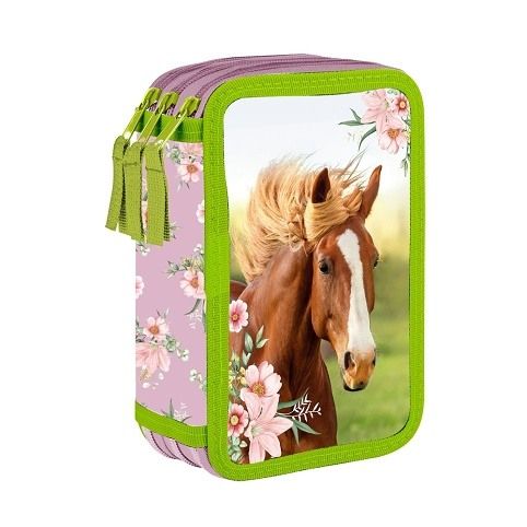 Školní penál třípatrový bez náplně. Penál obsahuje 40 gumových poutek pro uložení všech psacích potřeb a drobností potřebných k výuce. Penál má pevný zip s velkými taháčky pro snadnou manipulaci. Jedno patro je opatřeno průhlednou přihrádkou pro týdenní rozvrh.