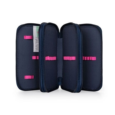 Školní penál třípatrový bez náplně. Penál obsahuje 41 gumových poutek pro uložení všech psacích potřeba a drobností potřebných k výuce. Penál má pevný zip s velkými taháčky pro snadnou manipulaci. Jedno patro je opatřeno průhlednou přihrádkou pro týdenní rozvrh.