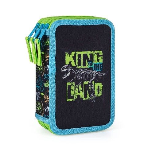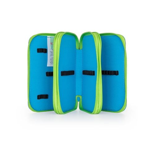 Školní penál třípatrový bez náplně. Penál obsahuje 40 gumových poutek pro uložení všech psacích potřeb a drobností potřebných k výuce. Penál má pevný zip s velkými taháčky pro snadnou manipulaci. Jedno patro je opatřeno průhlednou přihrádkou pro týdenní rozvrh.