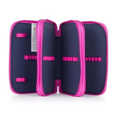 Školní penál třípatrový bez náplně. Penál obsahuje 40 gumových poutek pro uložení všech psacích potřeb a drobností potřebných k výuce. Penál má pevný zip s velkými taháčky pro snadnou manipulaci. Jedno patro je opatřeno průhlednou přihrádkou pro týdenní rozvrh.