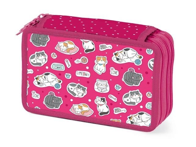 Školní třípatrový nevybavený penál v sytě růžové barvě s motivem koček. Díky třem patrům v něm uložíte naprosto všechny psací potřeby a pomůcky jako je pravítko, guma, ořezávátko, kružítko aj. Jedno patro disponuje průhlednou přihrádkou na rozvrh. Velice lehce se uzavírá díky velkému zipu a je z kvalitních a odolných materiálů. Bezesporu je nezbytnou součástí vybavení každého školáka. - není vybavený - zdravotně nezávadný a neobsahuje toxické látky DOPORUČENÍ: - čistit pouze navlhčeným hadříkem ve vodě s trochou saponátu Uvedená cena je za 1 ks.