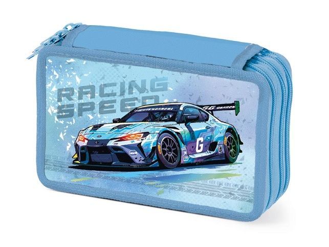 Školní třípatrový nevybavený penál ve světle modré barvě s motivem závodního auta. Díky třem patrům v něm uložíte naprosto všechny psací potřeby a pomůcky jako je pravítko, guma, ořezávátko, kružítko aj. Jedno patro disponuje průhlednou přihrádkou na rozvrh. Velice lehce se uzavírá díky velkému zipu a je z kvalitních a odolných materiálů. Bezesporu je nezbytnou součástí vybavení každého školáka. - není vybavený - zdravotně nezávadný a neobsahuje toxické látky DOPORUČENÍ: - čistit pouze navlhčeným hadříkem ve vodě s trochou saponátu Uvedená cena je za 1 ks.