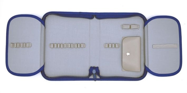 Praktická etue v abstraktním designu. Etue má dvě samostatné prostorné komory uzavíratelné na zip. Vhodná na psací a školní potřeby, ale i jiné drobnosti. Rozměr 22,5x7,5x10 cm.