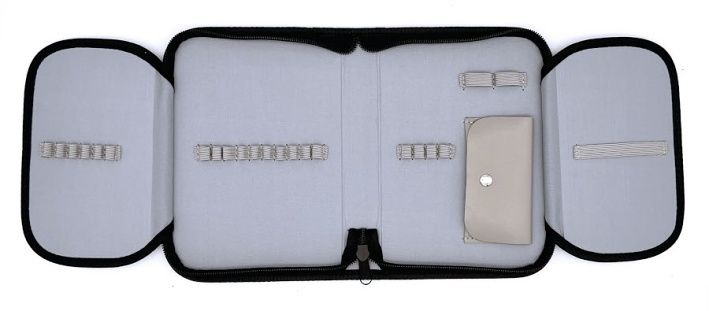 Praktická etue v abstraktním designu. Etue má dvě samostatné prostorné komory uzavíratelné na zip. Vhodná na psací a školní potřeby, ale i jiné drobnosti. Rozměr 22,5x7,5x10 cm.