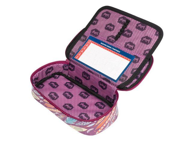 Pevný penál na zip s dvojitou výklopnou chlopní. Vnitřní kapsa na zip. Kapsa se školním rozvrhem.