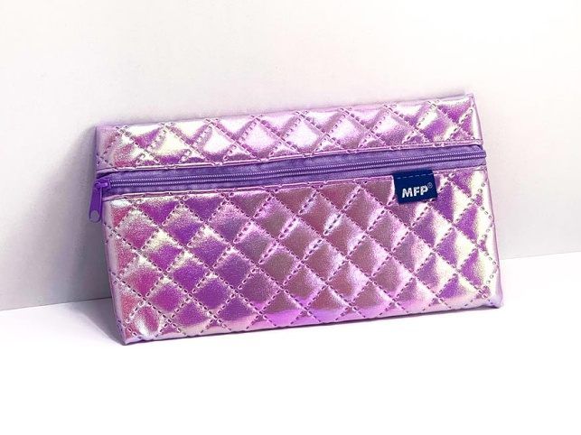 Školní penál/etue v perleťově fialové barvě, která vytváří duhové odlesky. Povrch je prošívaný ve vzoru kosočtverců, což dodává penálu strukturu a elegantní vzhled. Zip, který se táhne po celé šířce penálu, je sladěný s barvou penálu a je ve světle fialovém odstínu. Penál je plochý, obdélníkového tvaru, vhodný pro uložení psacích potřeb drobností nebo kosmetických předmětů. - není vybavený - zdravotně nezávadný a neobsahuje toxické látky DOPORUČENÍ: - čistit pouze navlhčeným hadříkem ve vodě s trochou saponátu Uvedená cena je za 1 ks.