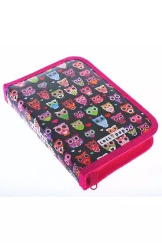 Jednopatrový školní penál s barevným motivem soviček. Pevné zapínání na zip, dostatek místa pro tužky, pastelky, pravítko a další školní pomůcky. Bez náplně.