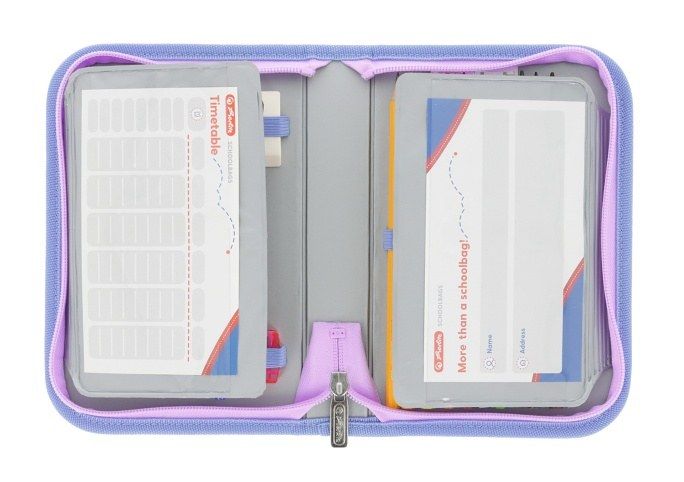Tachometr , 20,3 x 14 x 3,5 cm, 31 dílů - 14 fixů, 8 šestihranných pastelek, 2 tužky, ořezávátko, guma, 16 cm pravítko, trojúhelník, kuličkové pero, rozvrh hodin, vizitka, materiál: polyester