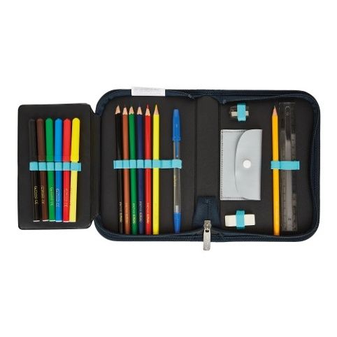 20,5 x 14 x 3,8 cm, 19 dílů Ę 6 fixí, 6 pastelek, 1 tužka, 1 pero, 1 ořezávátko, 1 guma, 1 pravítko, materiál polyester