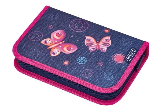 Penál školní 2-klopy Motýl modrý PLNĚNÝ HERLITZ (školní pouzdro 2-chlopně PLNĚNÉ)